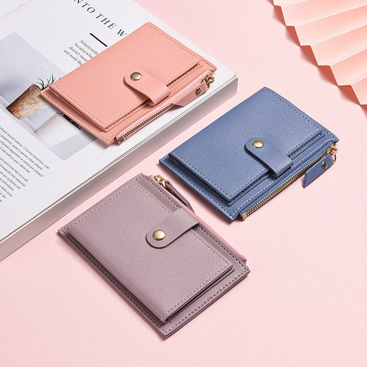 All-in-One Ultra-Thin Compact Soft PU Leather Zip Card Holder