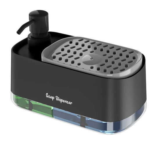 3-in-1 Soap Container- Hand Soap Dispenser, Detergent Dispenser, & Sponge Holder (Black)