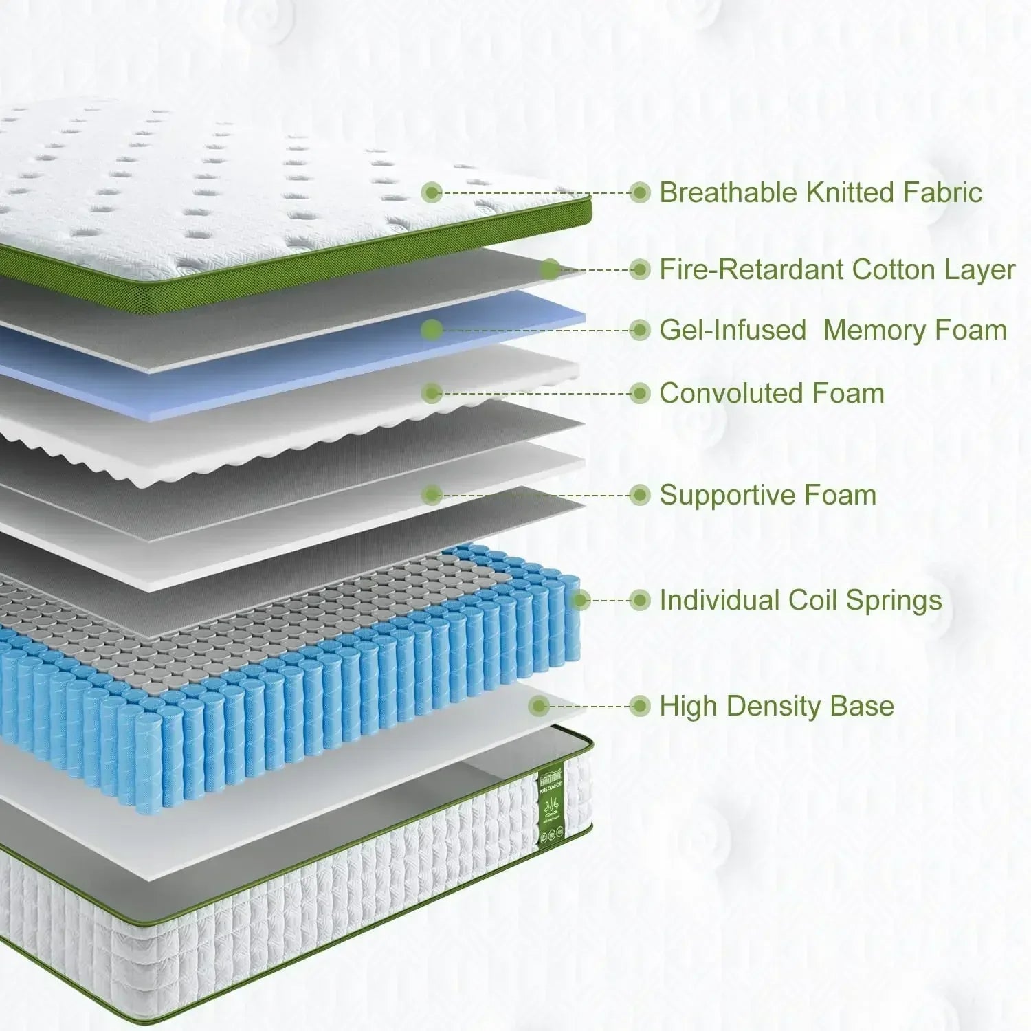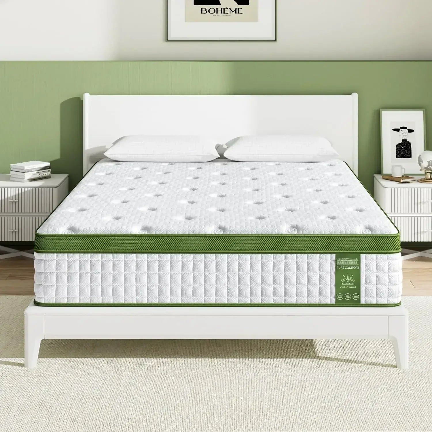 Colchón híbrido tamaño queen de 30 cm con espuma viscoelástica de gel y resortes embolsados (firmeza media)