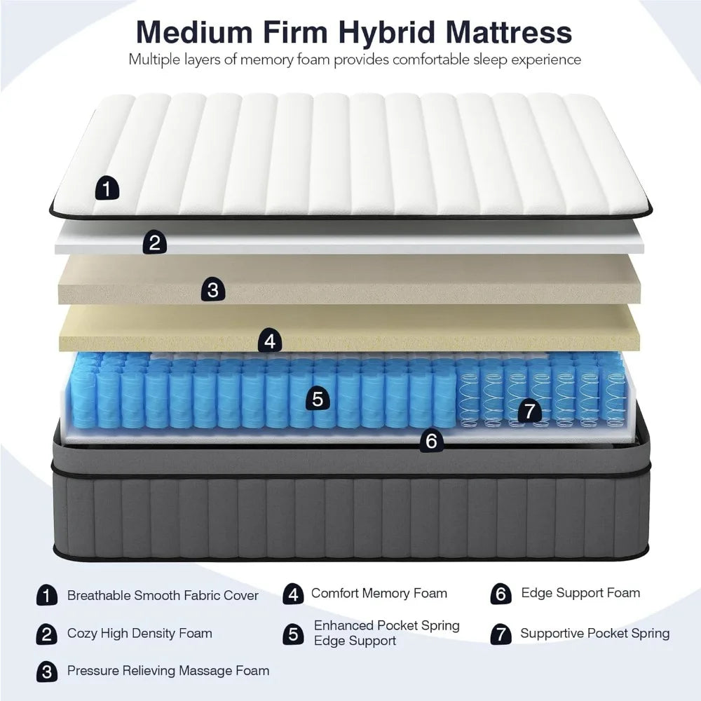 Colchón híbrido de espuma viscoelástica tamaño queen de 14 pulgadas