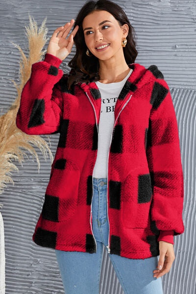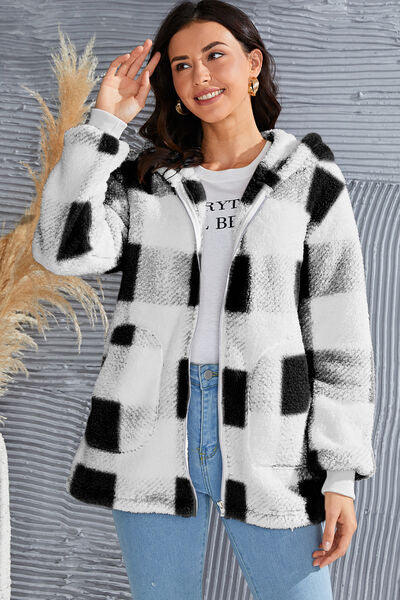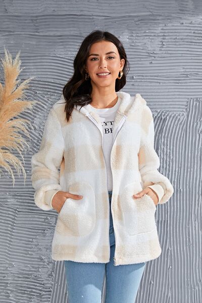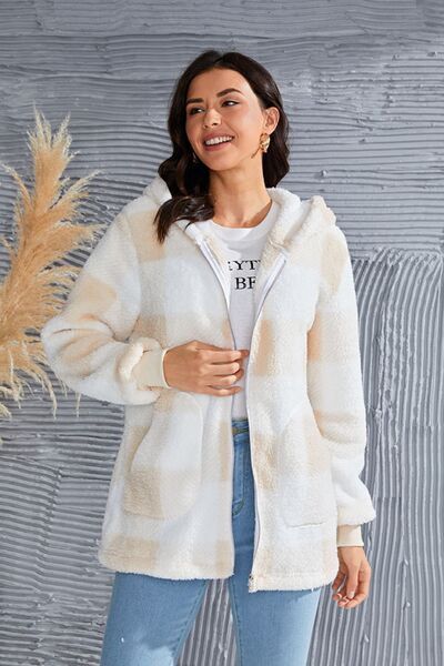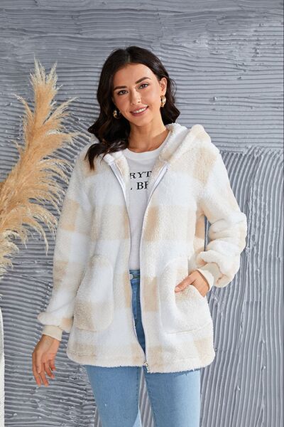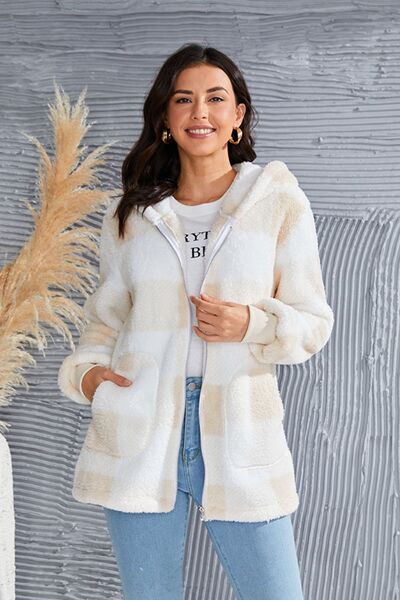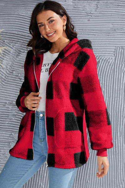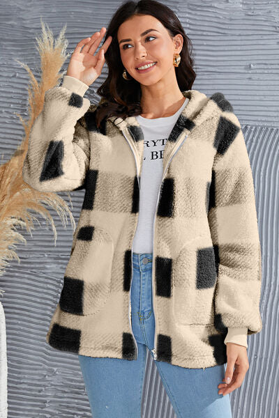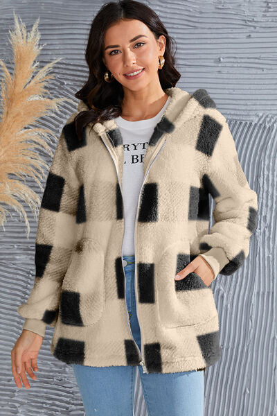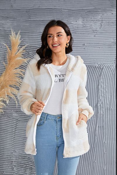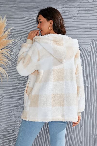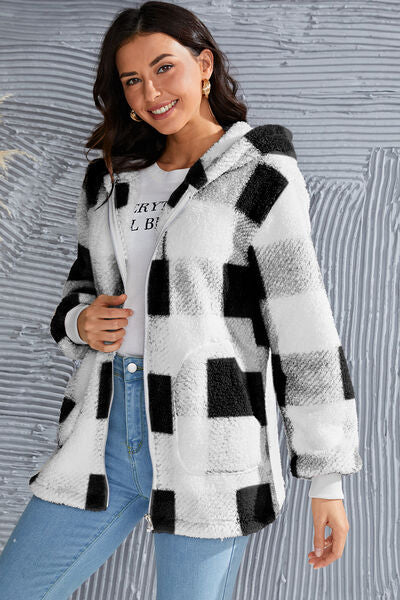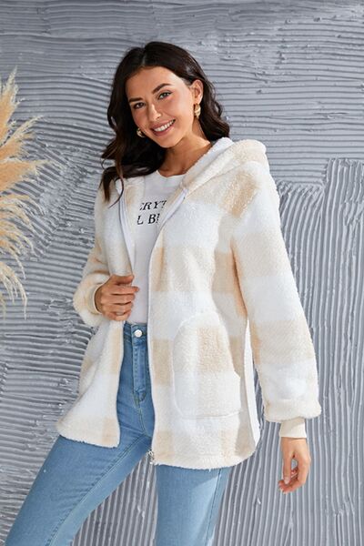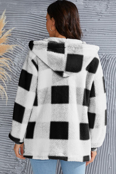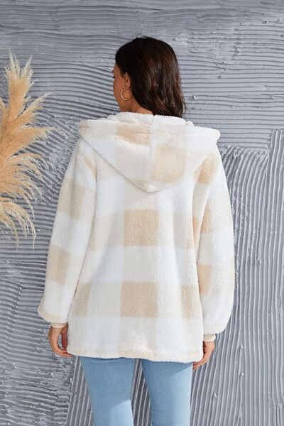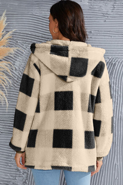 Abrigo con capucha de manga larga a cuadros de tamaño completo de doble toma