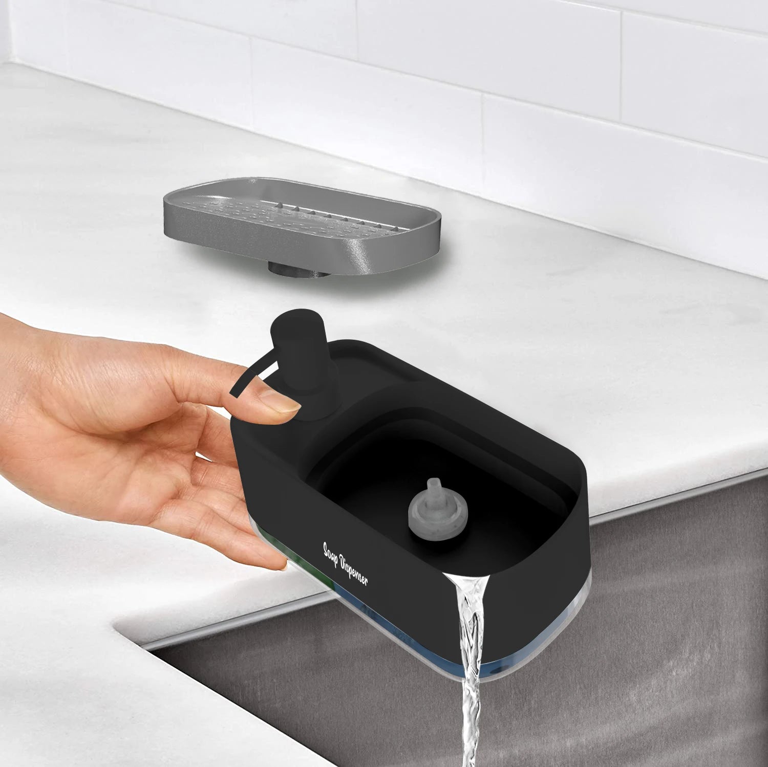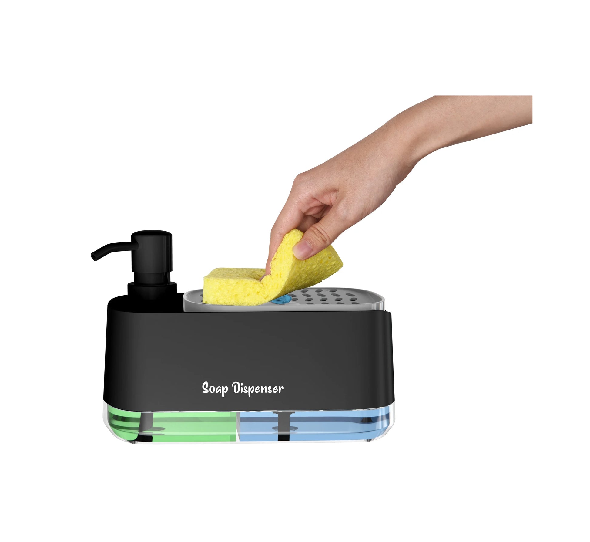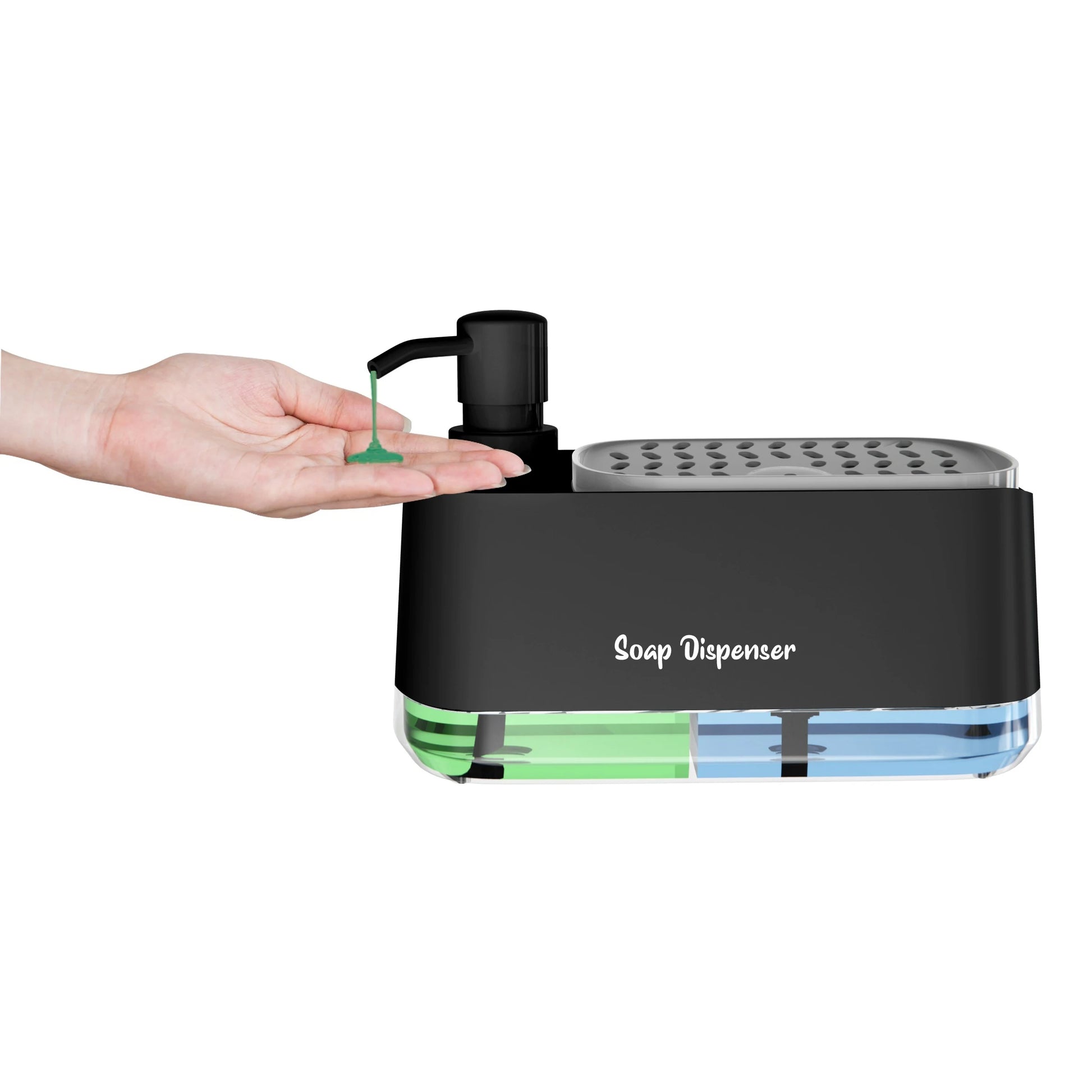 3-in-1 Soap Container- Hand Soap Dispenser, Detergent Dispenser, & Sponge Holder (Black)