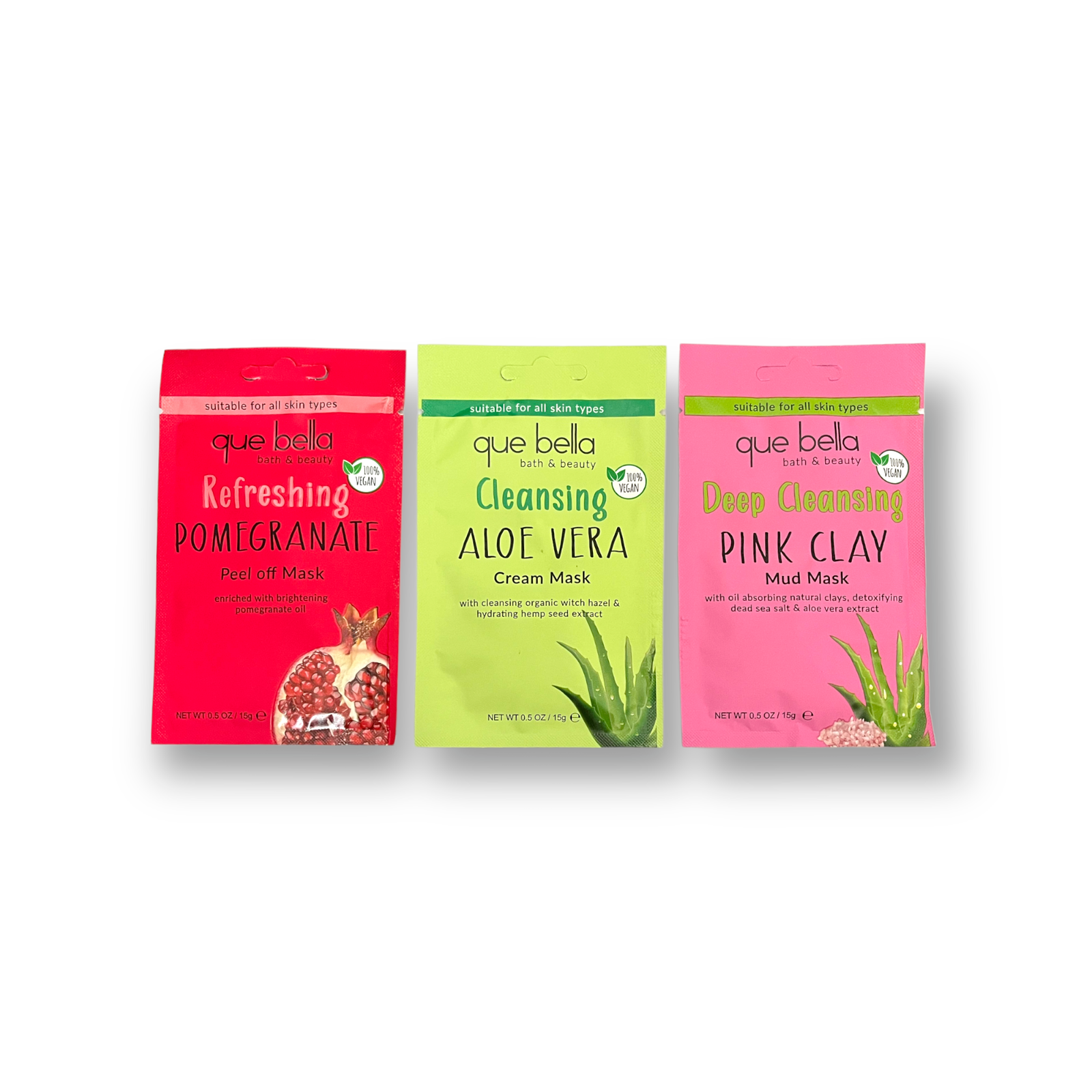 This set includes:2x Pomegranate peel off masks(Que Bella)