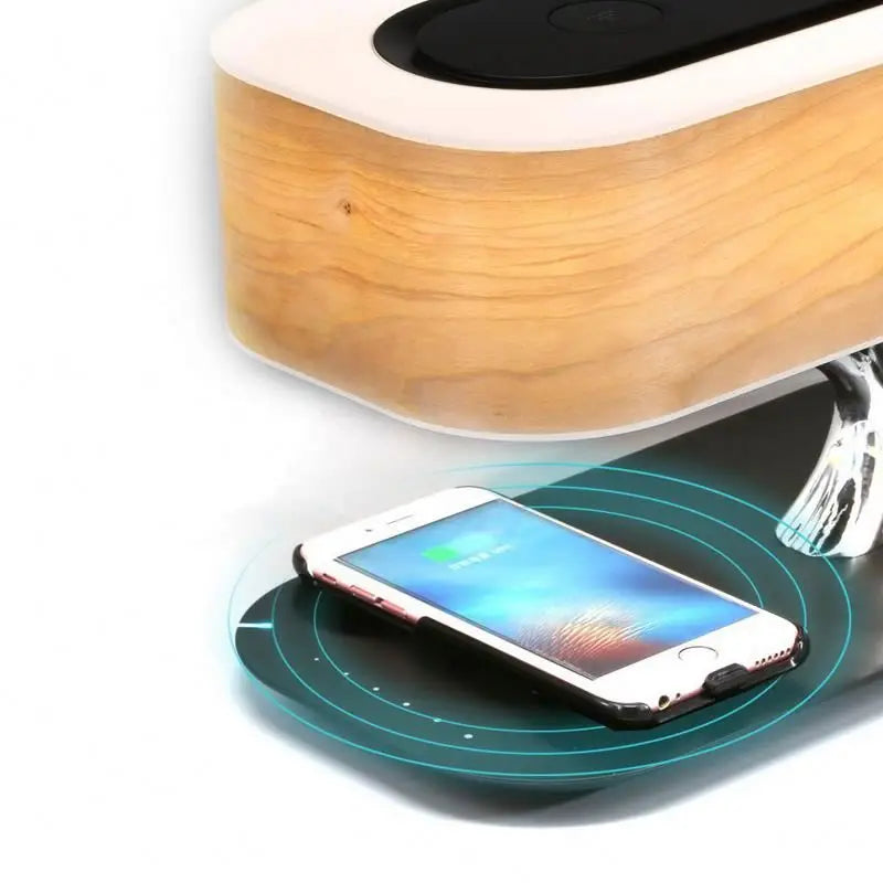 Multifunctional Hometree Desk Lamp Wooden Bedroom Table Lamp With Speaker Wireless