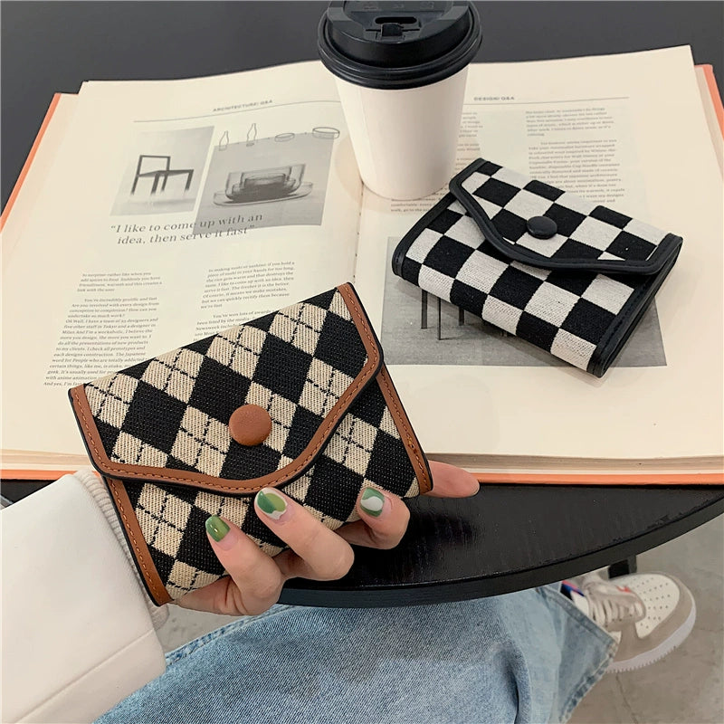 Vintage Plaid Canvas Buckle Wallet